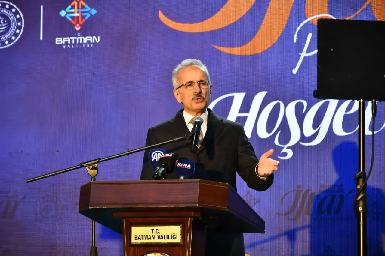 Ulaştırma ve Altyapı Bakanı Abdulkadir Uraloğlu, Batman’daki programı kapsamında ilk olarak Valiliği ziyaret etti. Ardından Batman Valiliği ve Belediye Başkanlığı iş birliğiyle Necat Nasıroğlu Külliyesi’nde düzenlenen “Huzur ve Kardeşlik İftar Programı”na katıldı. Her gün yaklaşık 7 bin kişiye ev sahipliği yapan külliyede vatandaşlarla buluşan Bakan Uraloğlu, hem yatırımları değerlendirdi hem de ülke gündemine dair önemli mesajlar verdi.