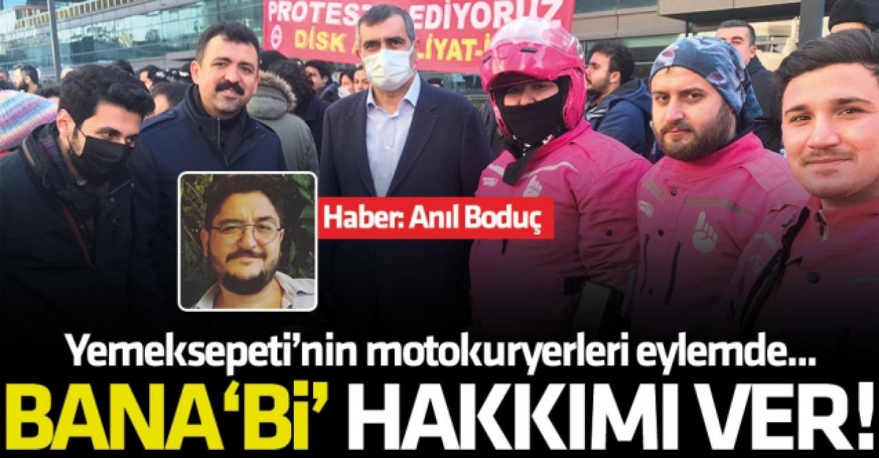 Maaşlarına yapılan düşük zamları kabul etmeyen esnaf kuryelerin eylemleri sürüyor. 5'inci günde de devam eden eylemlerinde Yemek Sepeti Genel Müdürlük binası önünde toplanan Yemek Sepeti ve BanaBi çalışanları, “Bugün de kontakları kapatıp genel merkez önüne geldik. Haklarımızı alana kadar buradayız” açıklamasını yaptı. Taleplerini dört maddede sıralayan çalışanlar, “5 bin 500 TL maaş, prim ve yan hak talep ediyoruz. Hakkını arayan hiçbir işçi ve kurye işten çıkarılmasın, iş kolumuz derhal taşımacılığa geçirilsin ve sendikal faaliyet güvence altına alınsın” ifadelerine yer verdi.