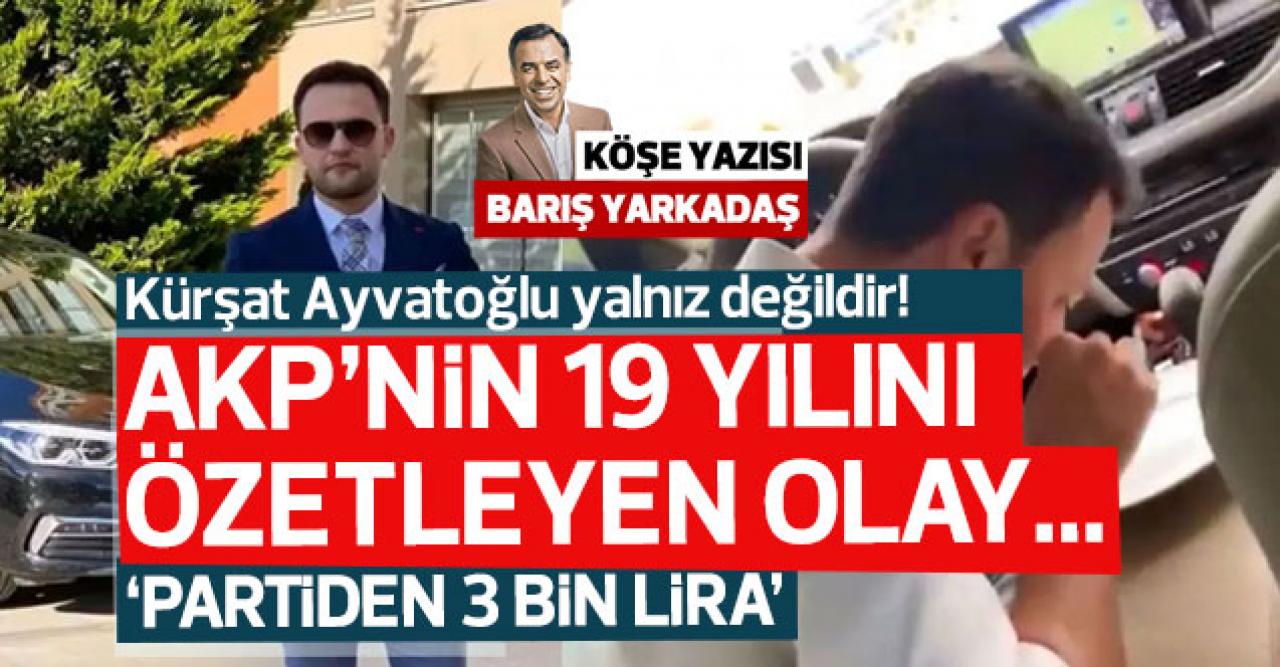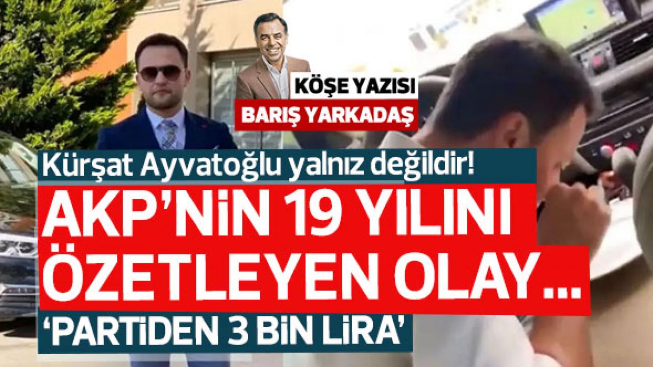 Barış Yarkadaş bugün DAMGA'da yayımlanan yazısında; ""AKP’nin 19 yılını özetleyen olay sizce nedir?" diye sorsalar, hiç tereddüt etmeden, "Kürşat Ayvatoğlu’nun ortalığa saçılan hikayesi" derim. Çünkü; bu hikayede, para – güç – rant – siyasetin kirli çarkları ve açgözlülük var… Tüm bunlar, aslında AKP’nin 19 yılını özetliyor.