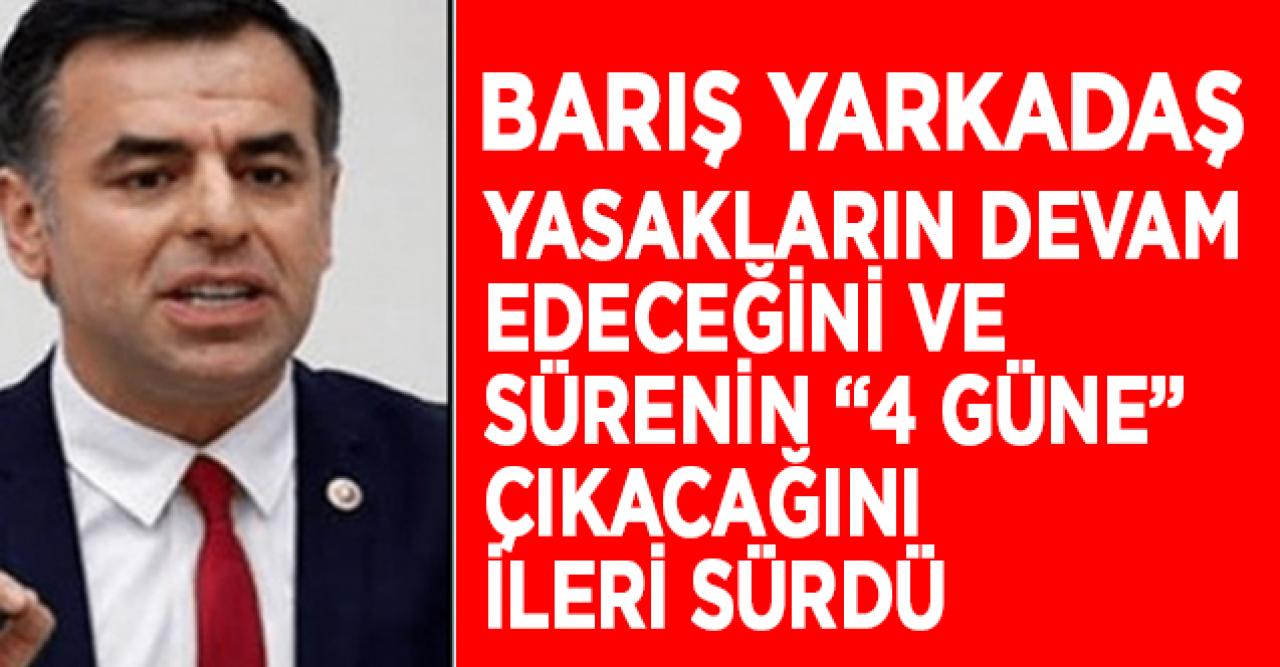 TV100'de Ahu Özyurt ile 10'dan 12'ye programına katılan gazeteci Barış Yarkadaş, sokağa çıkma yasaklarının yılbaşından itibaren haftada 3 güne, ardından da 4 güne çıkarılacağını ileri sürdü.