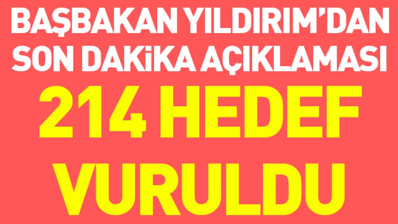 Başbakan Binali Yıldırım, Zeytin Dalı Harekatı ile ilgili "Operasyon planlandığı gibi devam ediyor ve şu ana kadar 214 hedef vurulmuş etkisiz hale getirilmiştir" dedi.