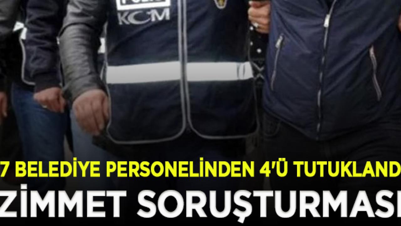Yozgat Belediyesinde "zimmet" iddiasıyla gözaltına alınan 7 personelden 4'ü tutuklandı. Savcılık sorgusunun ardından nöbetçi mahkemeye çıkartılan şüphelilerden E.Ç, A.U.K, İ.C.A. ve M.B.T. tutuklanırken, Ö.Ş, U.Ü. ve O.K. adli kontrol şartıyla serbest bırakıldı.