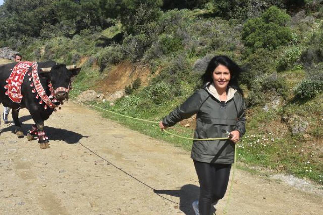 MUĞLA'nın Bodrum ilçesinde oğlu Çınar'ın (8) ismini verdiği boğası 'Goca Çınar' ile güreşlere katılan Buse Bozdağ (27), 7 Mayıs'taki Milas Boğa Güreşleri'ne hazırlanıyor.
