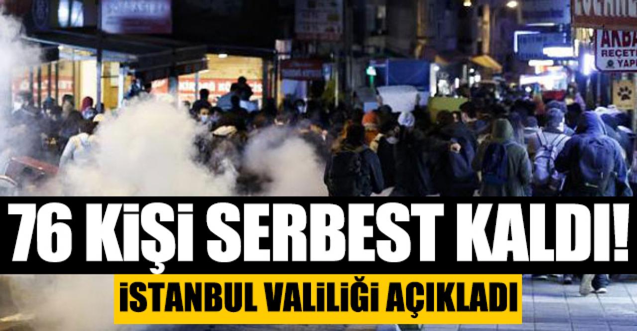 "Salı günü çeşitli grup ve sivil toplum kuruluşlarının sosyal medya hesaplarından Kadıköy İskele Meydanı'nda toplanma çağırıları yaptıkları ve akşam saatlerinde bir grup göstericinin toplandığı tespit edilmiştir. Meydanda toplananlara; salgın yayılımının engellenmesi ve toplum sağlığının korunması çalışmalarına olumsuz tesir edebilecek her türlü toplanmanın, Kadıköy Kaymakamlığınca yasaklandığı bildirilerek dağılmaları istenmiştir. Yapılan tüm uyarılara rağmen; alandan ayrılmayan ve güvenlik güçlerimize mukavemette bulunan şahıslara müdahale edilmiş, Rıhtım Meydanı'ndan çeşitli cadde ve sokaklara dağılan göstericilerin, bu sırada emniyet araçları ve çevreye zarar verdikleri tespit edilmiştir. Kadıköy ilçemizde düzenlenen yasadışı toplanmada yakalanan 94 şüphelinin 29'u hakkında Cumhuriyet Başsavcılığı talimatları ile gözaltı işlemi uygulanırken, 65 kişi ifadeleri alındıktan sonra serbest bırakılmıştır. Bu eyleme katılmak üzere Beşiktaş ve Sarıyer ilçelerimizde toplanan ve yapılan bütün uyarılara karşı direnerek mukavemette bulunan 11 şüpheli, Cumhuriyet Başsavcılığı talimatları ile gözaltına alınmış ve haklarında idari yaptırım kararı uygulanarak serbest bırakılmıştır.