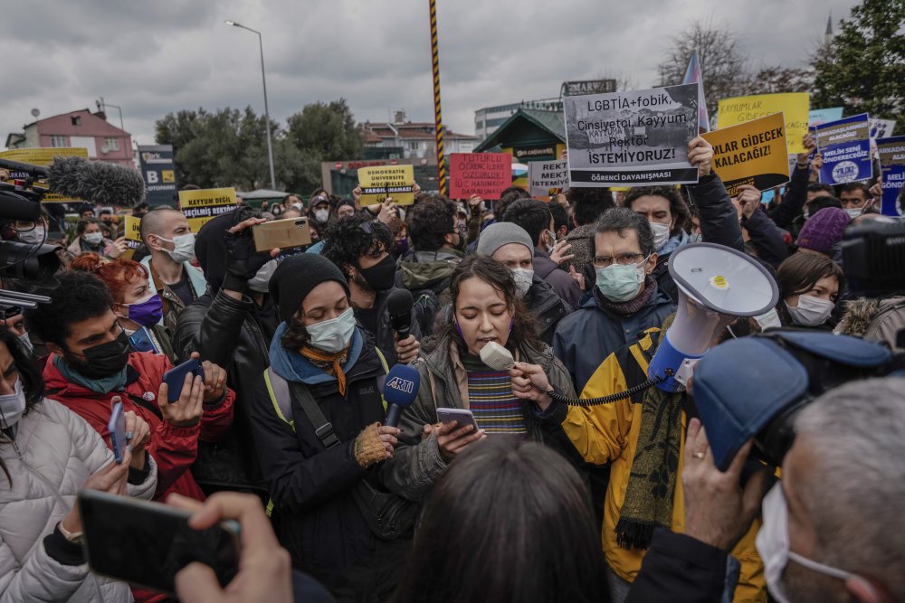 Sanık avukatlarından Levent Pişkin, iddianamenin iadesini ve toplumda açık ve yakın tehlikenin olmadığı eylemin bu nedenle ifade özgürlüğü kapsamında kaldığı ve suç unsurları oluşmadığından sanıkların derhal beraatlerini talep etti. Ancak mahkeme, iddianamenin kabul edilmiş olduğu gerekçesiyle talebi reddetti. Duruşmada iddianamenin okunmasının ardından sanık öğrencilerin ifadesinin alınmasına geçildi. Sanık Doğu Demirtaş savunmasında, " Rektörlük protestolarının ardından daha barışçıl bir amaçla sergi protestosu yapmak istedik. Söz konusu eser anonim bir eser. Hiçbir kişi ya da kesimi aşağılamak gibi bir amacım yok. Suçlamayı kabul etmiyorum" dedi. LGBTi üyeliği olup olmadığı sorulan sanık Demirtaş, "Yok, ama arkadaşlarım var" dedi. Hakimin resmi kimin astığını sorması üzerine "Resmi asan kişi güvenlik görevlisiydi" diye cevap verdi.