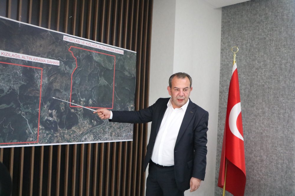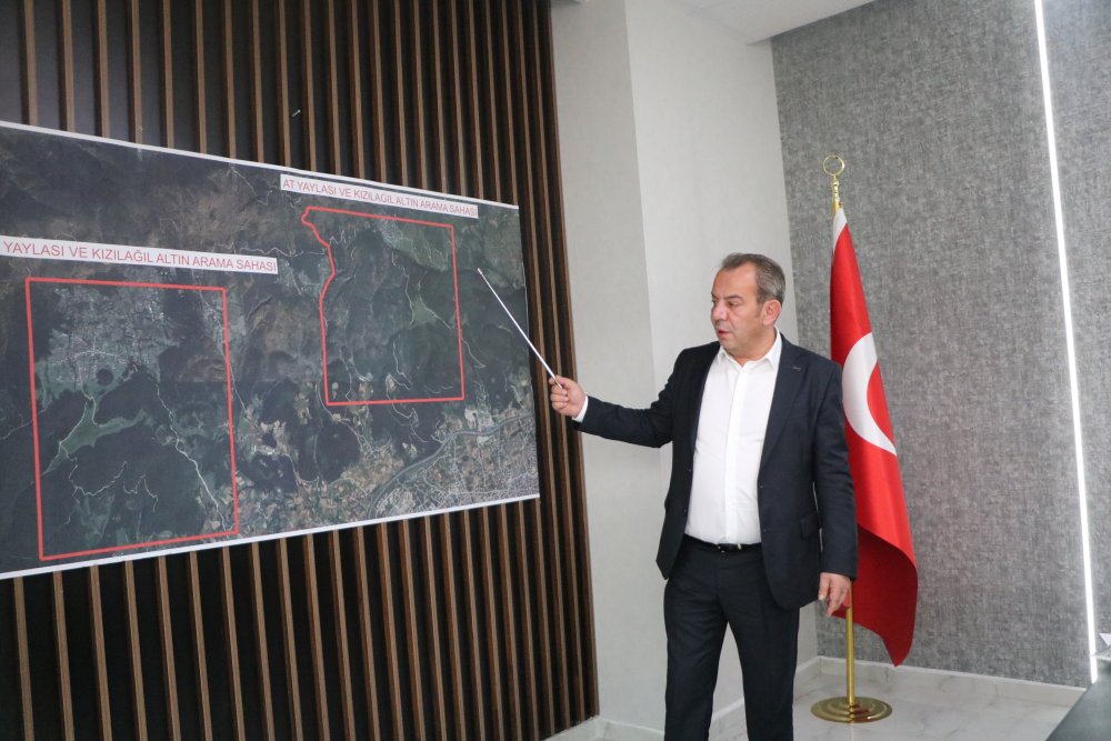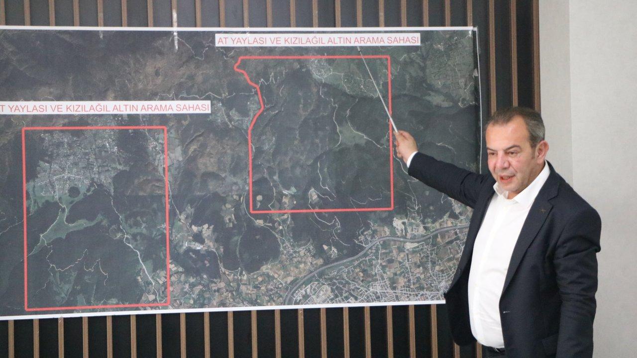 Bolu Belediye Başkanı Tanju Özcan, kent merkezine 26 kilometre uzaklıktaki At Yaylası ve Kızılağıl mevkindeki 1070 hektar ve 1260 hektar olmak üzere 2 bin 330 hektarlık 2 alana maden arama ruhsatı verildiğini belirterek tepki gösterdi. Başkan Özcan, düzenlediği basın toplantısında uydu fotoğrafları üzerinden maden arama ruhsatı verilen alanları açıklayarak, "Seçim öncesinde gündeme gelen bir konu vardı. AK Parti Bolu Milletvekili Yüksel Coşkunyürek'in deyimiyle 2021 yılında bir firmaya altın arama ruhsatı verilmiş. Bizi çok şaşırtan ve üzen gelişmeler oldu. Bunları belgeleriyle size açıklayacağım. Burada 2 tane saha için ruhsat vermişler. Birinci arazinin tamamı ormandan oluşuyor. Sayın vekilimiz altın arama sahası dediği için biz de onu kullanıyoruz. Altın arama sahası mı maden arama sahası mı ruhsatta herhangi bir detay bulamadık. Burada akarsular, yer altı suları ve 4 köyün yerleşim alanı var. Biz 1 tane yere ruhsat verildiğini düşünürken asıl bizim canımızı yakan At Yaylası mevkisine de aynı büyüklükteki bir alana arama ruhsatı verilmiş. Burası Bolu'nun en büyük yaylası. Burada 13 köyün yaylası var. Diğer alanda altın aranacağı söylendi ama diğer alanda çok kıymetli bir torf var. Türkiye'nin en kıymetli torfu olduğu söyleniyor. Burada değeri 100 milyonlarca doları bulan torf madeni var. Altın çıkartmayı umuyorlar mı bilmem ama burada torf olduğu belli. İki ruhsat sahibinin de Varlık Fonu şirketlerinden Koza Altın İşletmeleri Anonim Şirketi. Ruhsat iki alana da 5 Aralık 2021'de 4 yıl süreyle verilmiş ama talep olması halinde bu uzayabiliyor. 1,5 yıla yakın bir zaman daha var önümüzde. Buna dur dememiz lazım" diye konuştu.