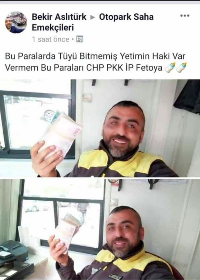 Sadece soruyorum.. İspark gişesinde İstanbulludan topladığı paralarla fotoğraf çektirip, sosyal medya hesabından 'Vermem bu paraları CHP PKK İP Fetoya' paylaşımını yapan İBB çalışanı halen görevinde mi? Görevindeyse, neden? Elinde salladığı o paraları şimdi kime veriyor?
