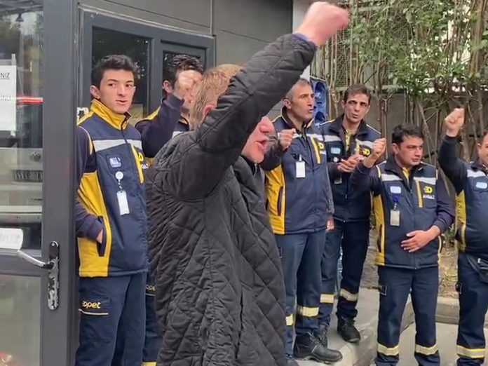 Sarıyer’deki Mehmetçik Vakfı önünde bir araya gelen Petrol-İş üyesi işçiler Mehmetçik Vakfına bağlı benzin istasyonuna sloganlarla yürüdü. “Mehmetçik Vakfında emek sömürüsü yapılıyor. Emek sömürüsüne hayır” yazılı pankartın arkasında toplanan Petrol-İş üyesi işçiler vakfa bağlı benzin istasyonundaki kötü çalışma koşullarını protesto etti.