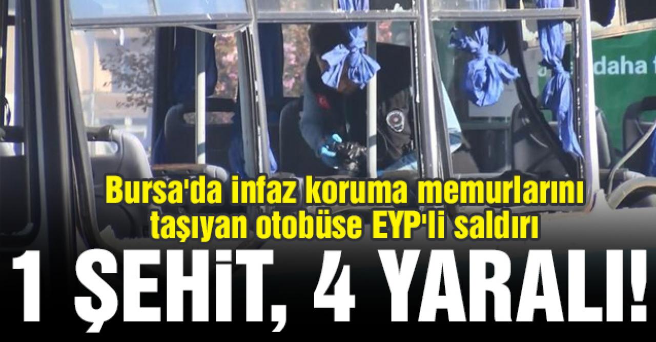 İçişleri Bakanı Süleyman Soylu; Bursa’da infaz koruma memurlarını taşıyan servis otobüsünün geçişi sırasında meydana gelen patlamanın EYP’li saldırı olduğunu açıkladı. Bakan Soylu, Twitter hesabından yaptığı paylaşımda, “Mudanya yolunda infaz koruma memurlarının geçişi esnasında bir EYP'nin uzaktan kumandayla patlatılması sonucu 1 infaz koruma memurumuz şehit oldu. Faillerin yakalanması için çalışmalar sürüyor. Şehidimize Allah’tan rahmet, yaralı personelimize acil şifalar diliyorum” dedi.
