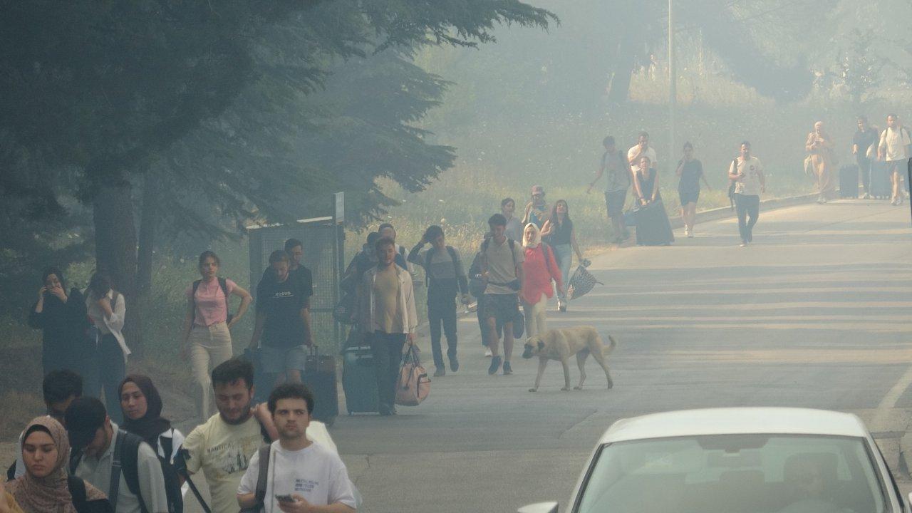 Yangının binalara ulaşmaması için hem karadan hem de havadan müdahale sürerken, kampüs içerisindeki öğrenci yurtları da tahliye edildi. Eşyalarını toplayan öğrenciler, valizleriyle birlikte, toplanma alanı olarak belirlenen kampüs içerisindeki cami inşaatının bulunduğu alana geldi. Kampüs içindeki başta atlar olmak üzere hayvanlar da tahliye edildi.