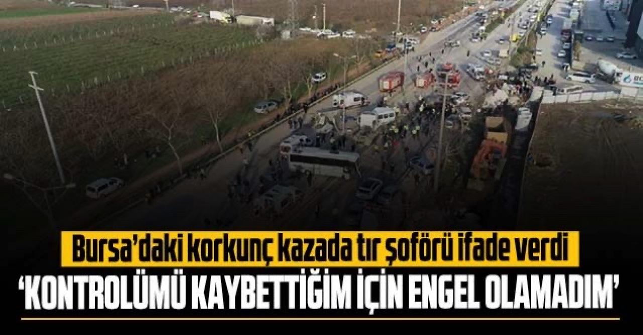 Bursa'nın Kestel ilçesi Barakfakih mevkisinde dün akşam saatlerinde meydana gelen kazada, 51 yaşındaki Faruk E.'nin kullandığı 18 AAJ 361 plakalı tır, freninin boşalması nedeniyle kontrolden çıkarak kırmızı ışıkta bekleyen 22 araca çarpıp, altına alarak sürükledi.