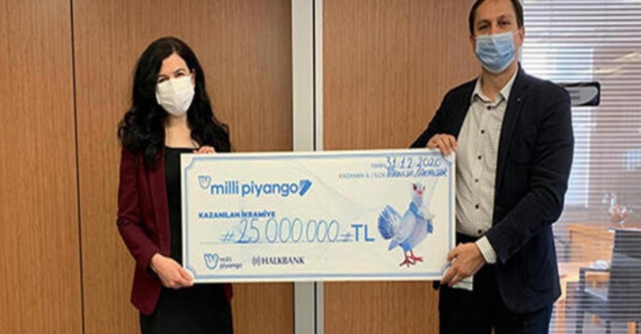 Sisal Şans tarafından 31 Aralık Perşembe günü düzenlenen Milli Piyango özel yılbaşı çekilişinde 25 milyon TL ikramiye kazanan talihli çekini teslim aldı.