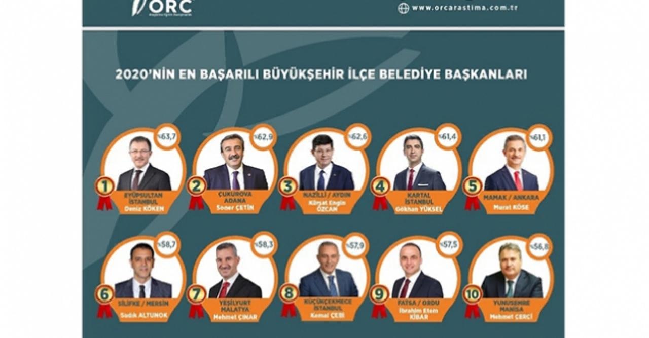 Araştırma 01 -19 Aralık 2020 tarihleri arasında 30’u büyükşehir toplam 51 ilde 42 bin 510 kişi ile yüz yüze ve bilgisayar destekli telefon görüşmesi yöntemiyle gerçekleştirildi. İstanbul genelinde ise ikinci sırada yer alan Başkan Gökhan Yüksel, “Ben ve mesai arkadaşlarım Kartal’ı canlandırmak için sosyal belediyecilik anlayışıyla Kartal’da alt yapıdan üst yapıya kentin her mahallesinde önemli projeleri hayata geçirmeye devam ediyoruz. İlçemizi kültürde, sanatta, sporda adı anılan bir yer haline getirmek hem Kartal’a hem İstanbul’a nefes olacak projeler üretmek için çalışıyoruz. Kartal’ı daha umut dolu yarınlara taşımak için ben ve tüm mesai arkadaşlarım aralıksız çalışmaya devam edeceğiz” diye konuştu. Kartal Belediye Başkanı Gökhan Yüksel’in Büyükşehir İlçe Belediye Başkanları sıralamasında, dördüncü̈ sırada yer aldığı araştırmada, Eyüpsultan Belediye Başkanı Deniz Köken % 63.7 oranla birinci, Çukurova Belediye Başkanı Soner Çetin % 62.9 oranla ikinci, Nazilli Belediye Başkanı Kürşat Engin Özcan ise % 62.6 oranla üçüncü sırada yer aldı.