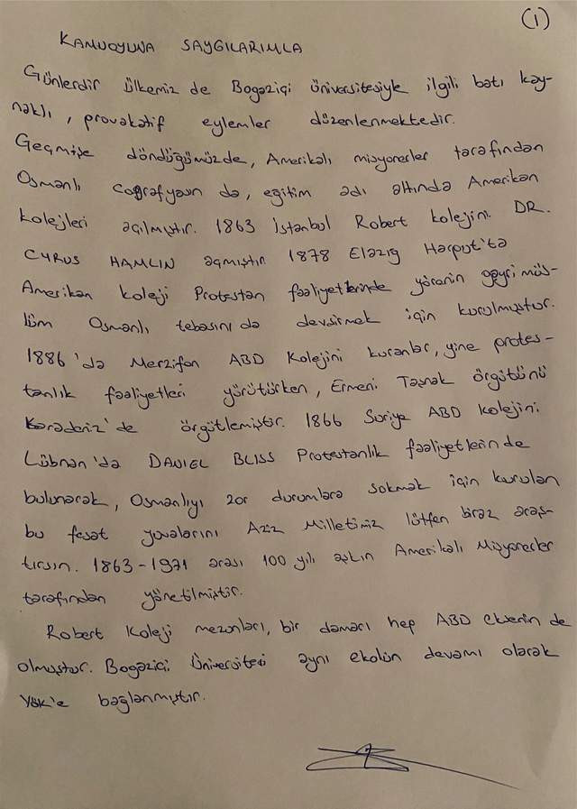 Alaattin Çakıcı sosyal medya hesabından yayınladığı bir mektupta, Boğaziçi'ne rektör olarak atanan Melih Bulu'nun istifası için yapılan protesto gösterilerinin 'Cumhur İttifakı'na zarar vermek' için 'terörist öğrenciler' tarafından düzenlendiğini öne sürdü. Çakıcı, Melih Bulu'ya "Lütfen istifa etmeyin, istifa ederseniz bu terörist öğrencilerin önünü açarsınız. Bu kutlu ittifakta gedik açmaya hakkınız yok" sözleriyle seslendi.