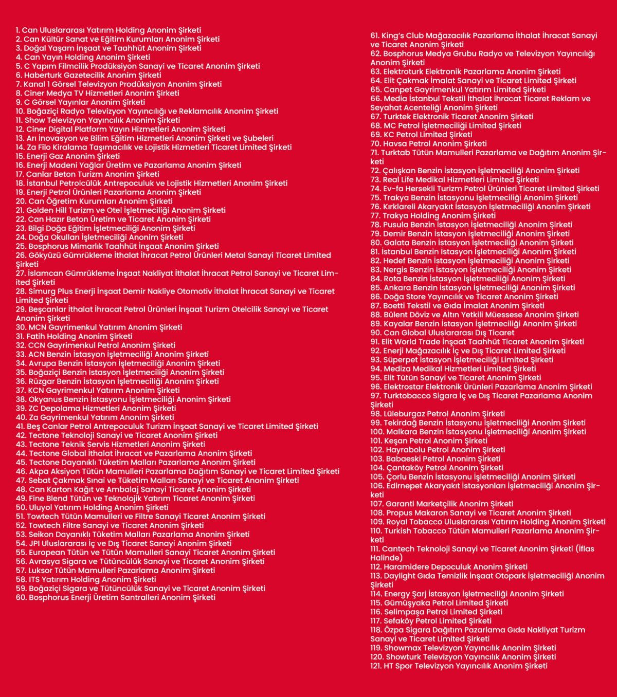 Küçükçekmece Cumhuriyet Başsavcılığı tarafından yürütülen soruşturma kapsamında, Habertürk ve Show TV’nin de aralarında bulunduğu Can Holding şirketlerine kayyum atandı. TMSF, holding bünyesindeki 121 şirketin yönetimini devraldı.