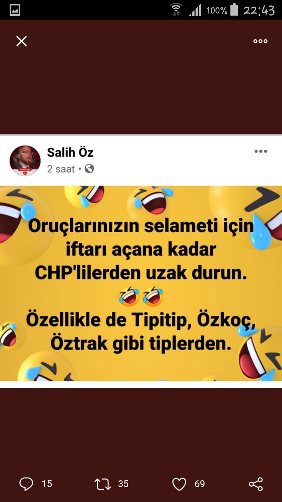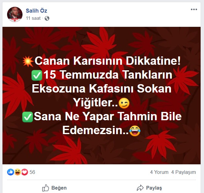 Salih Öz'ün sosyal medya paylaşımlarının bir kısmı şu şekilde: