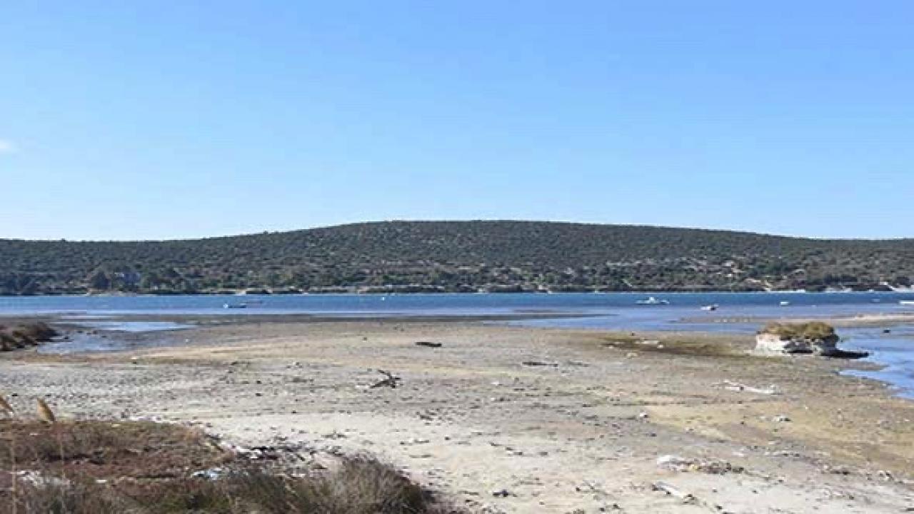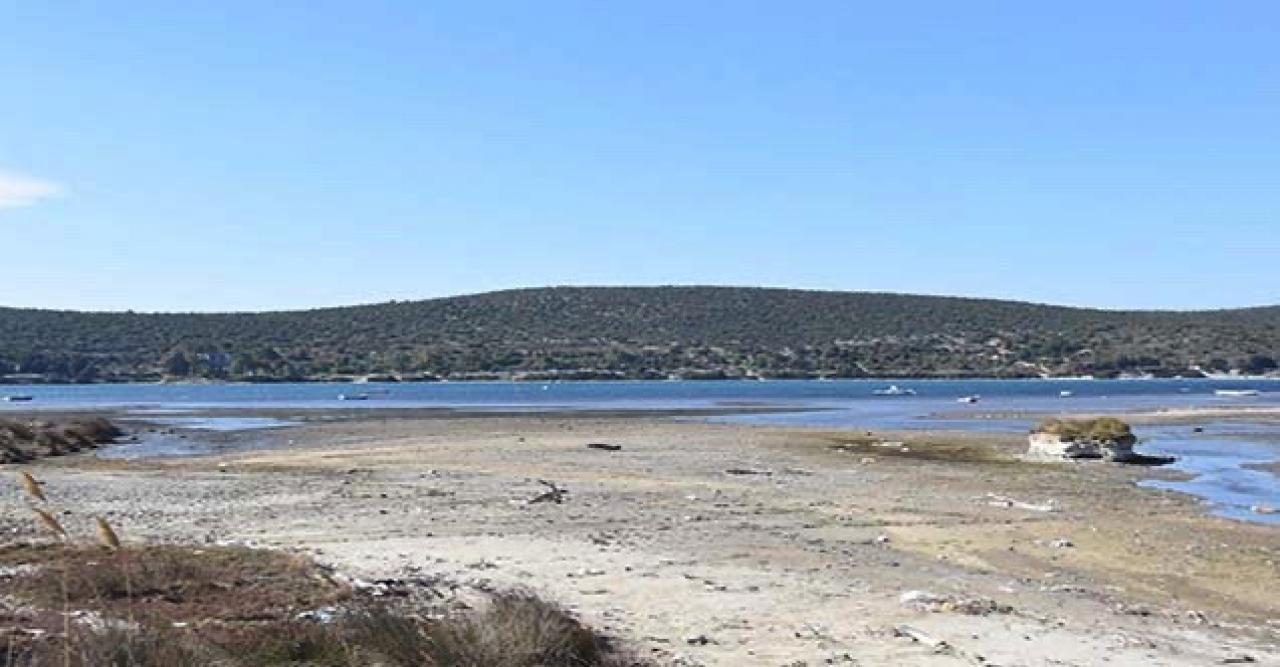 Ildır Sahili'nde de görülen çekilme ile deniz kirliliği de ortaya çıktı.