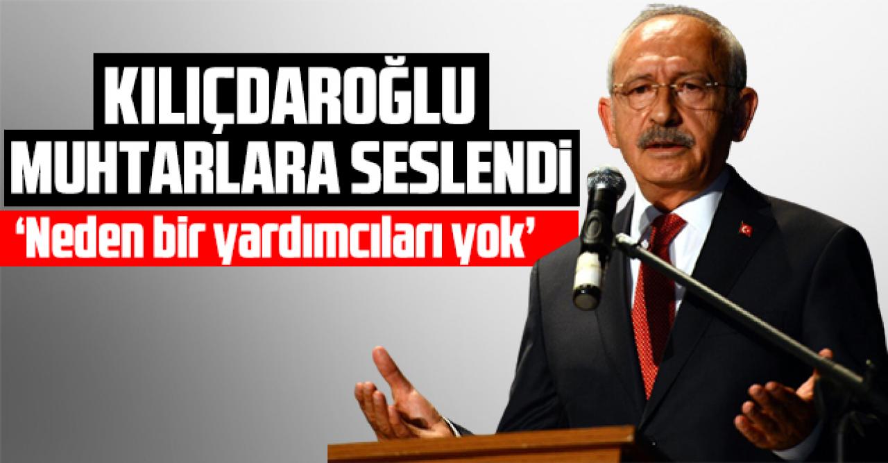 Muhtarların sorunlarını dinleyen Kılıçdaroğlu, yaptığı açıklamada, 'Türkiye Muhtarlar Birliği' kurulmalıdır önerisinde bulundu. Belediyelerin aldığı emlak vergilerinin yüzde 1'lik kısmının muhtarlara verilmesi gerektiğini söyleyen Kılıçdaroğlu, muhtarların kamu kurumu olarak tanınması ve belediyelerle işbirliği yapabilmesinin önünü açan düzenlemelerin yapılması gerektiğini söyledi. Sosyal yardımların muhtarlar aracılığıyla dağıtılması gerektiğine vurgu yapan Kılıçdaorğlu, "Devleti yönetenler sosyal yardımları muhtarlar aralıcığıyla yaptırırsa, yardım yerine ulaşmış olur" dedi.