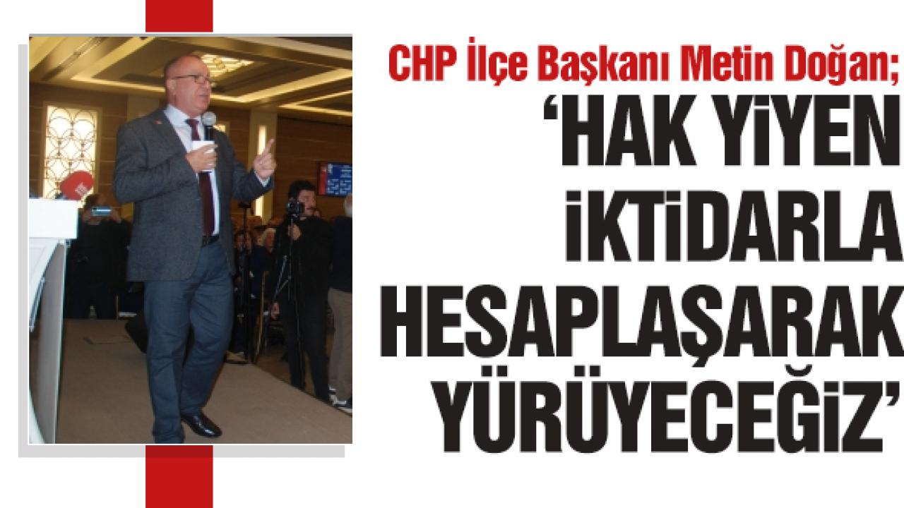 İlçe Başkanı Metin Doğan, “Bu salonda görünen manzara iktidara yürüyüşün manzarasıdır. İktidara barışla, kardeşlikle, dostlukla, dayanışma ile, helalleşerek yürüyeceğiz ancak mazlumun ve mağdurun hakkını yiyen iktidarla da hesaplaşarak yürüyeceğiz. İstanbul’u Türkiye’yi soyup soğana çeviren dikta yönetimiyle meydanlarda, salonlarda ve de sandık başında hesaplaşacağız. Yapılanların hesabını bu iktidardan sormalıyız. Amacımız buna yöneliktir. CHP’nin iktidarını kurarken bunların hepsini gerçekleştirmek zorundayız. Anadolu işgal edilirken, tersanelerimiz zapt edilirken, limanlarımız yok edilirken, yiğit Mustafa Kemal'imiz 1919’da Samsun’a çıktı. Bu gün en kötü ve olumsuz koşullarda tek adam yönetiminin ülkesinde, yargının, üniversitelerin, sendikaların, itaat etmeyenlerin zapturapt altına alındığı, Silivri’ye gönderildiği böyle bir ortamda Genel Başkanımız, onurumuz, gururumuz bizim Kemal'imiz Kılıçdaroğlu’nu Çankaya’ya çıkarmak hepimizin namus borcudur. Hep birlikte büyük denizler olalım ki, karaya coşkuyla vuralım. Oyumuzla sandıkları patlatalım” dedi.