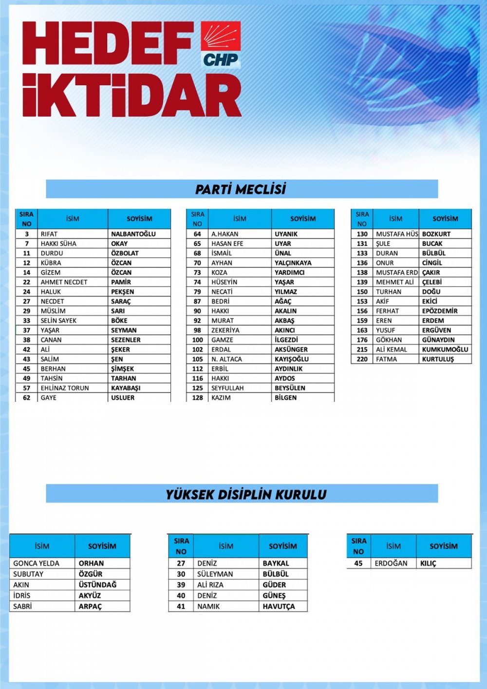 15 kişilik Yüksek Disiplin Kurulu için toplam 50 kişi aday oldu. Kılıçdaroğlu; Parti Meclisi için 80, Bilim Yönetim ve Kültür Platformu için 12, Yüksek Disiplin Kurulu için ise 15 isim belirledi.