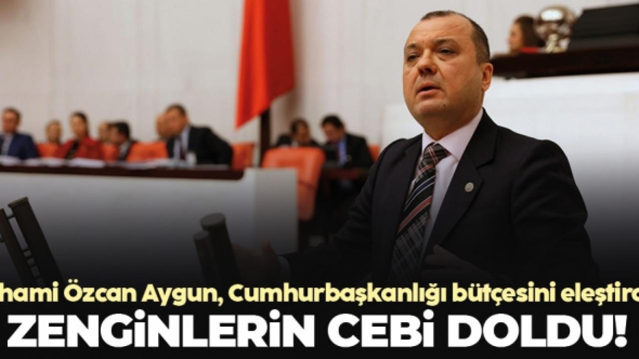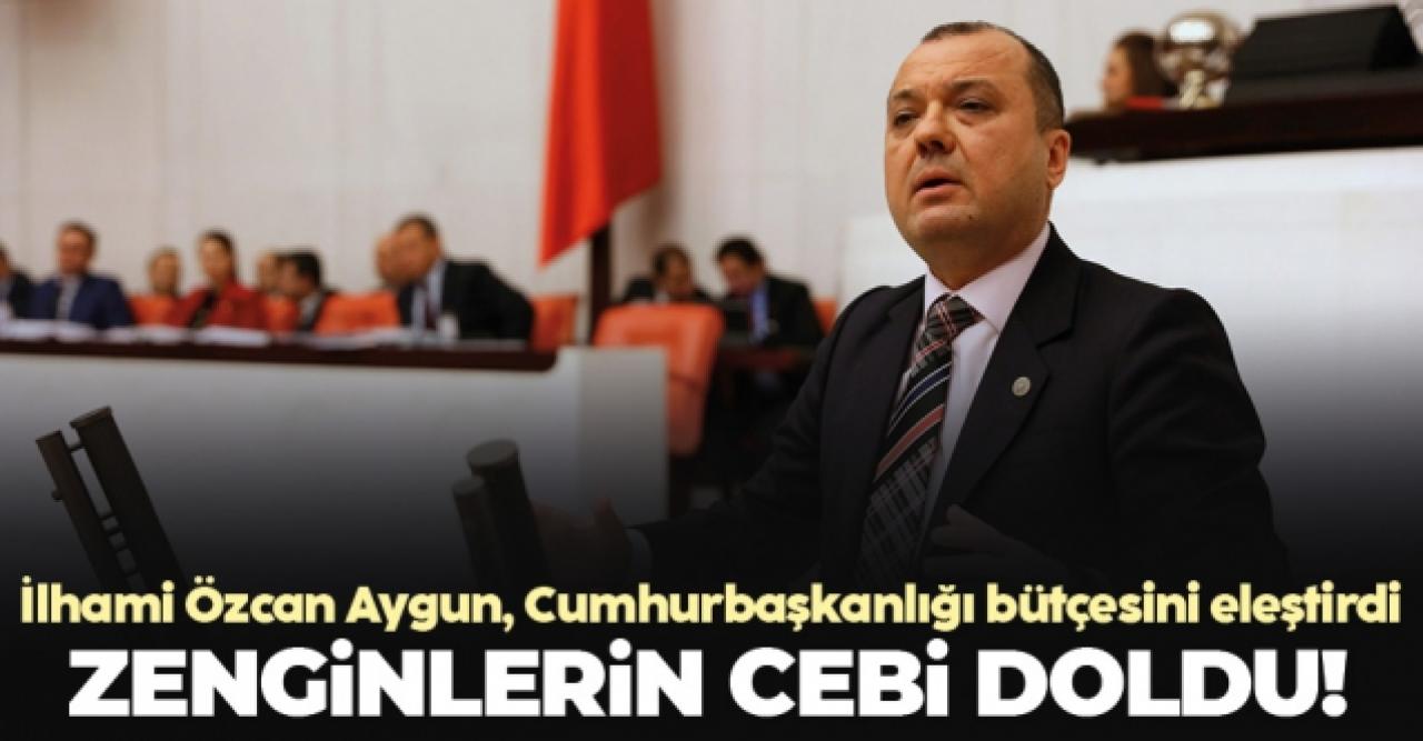 CHP Tekirdağ Milletvekili İlhami Özcan Aygun, Cumhurbaşkanlığı bütçesini eleştirdi. Aygun, “Bu bütçe sarayın insafını anlatan bütçedir, halkın değil zenginlerin cebini dolduran bütçedir. Bin 100 odalı Türkiye'nin bütçesini yutan obur bir sarayın bütçesidir” dedi