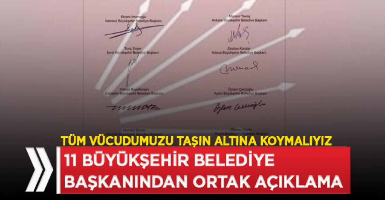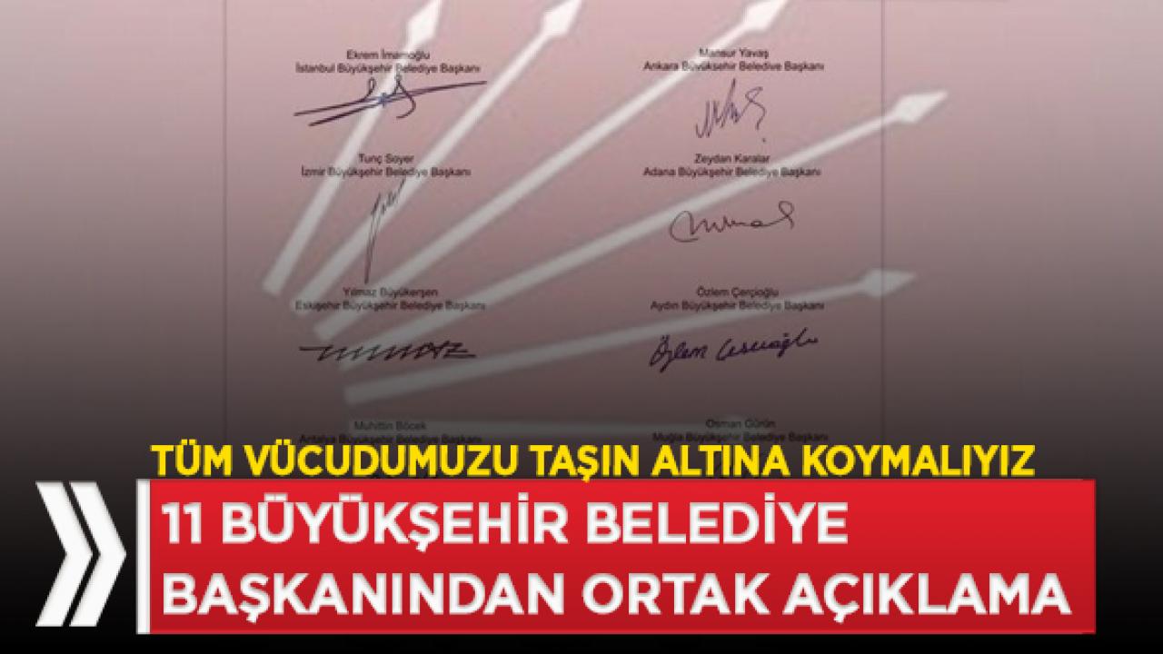 Ortak bildiriye İstanbul Büyükşehir Belediye Başkanı Ekrem İmamoğlu, Ankara Büyükşehir Belediye Başkanı Mansur Yavaş, İzmir Büyükşehir Belediye Başkanı Tunç Soyer, Adana Büyükşehir Belediye Başkanı Zeydan Karalar, Mersin Büyükşehir Belediye Başkanı Vahap Seçer, Eskişehir Büyükşehir Belediye Başkanı Yılmaz Büyükerşen, Hatay Büyükşehir Belediye Başkanı Lütfü Savaş, Muğla Büyükşehir Belediye Başkanı Osman Gürün, Antalya Büyükşehir Belediye Başkanı Muhittin Böcek, Tekirdağ Kadir Albayrak ve Aydın Özlem Çerçioğlu, imza attı.