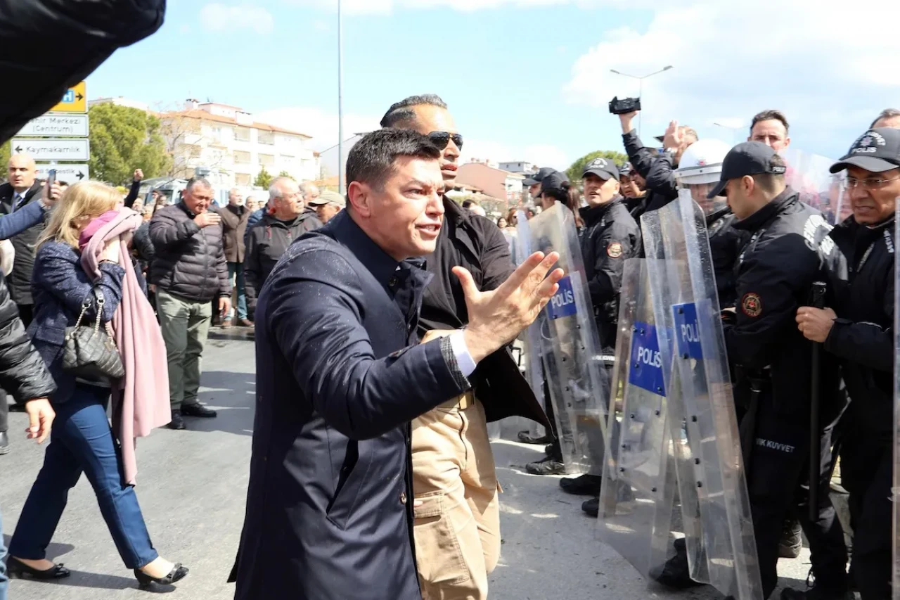 Muğla’da, CHP’li grupların İstanbul Büyükşehir Belediye Başkanı Ekrem İmamoğlu’nun gözaltına alınmasını protesto etmek için düzenlediği izinsiz yürüyüş gergin anlara sahne oldu. Polis müdahalesi sırasında, biber gazından etkilenerek polis kalkanına yumruk atan ve sloganlar atan Marmaris Belediye Başkanı Acar Ünlü hakkında “kamu görevlisine direnme” ve “Toplantı ve Gösteri Yürüyüşleri Kanunu’na muhalefet” suçlamalarıyla soruşturma başlatıldı.