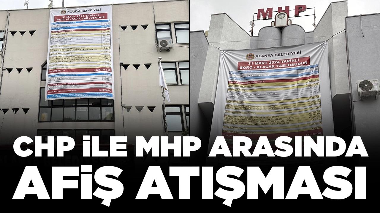 Alanya Belediyesi'ne asılan afişe MHP İlçe Başkanlığı'ndan da afişli karşılık geldi. MHP ilçe binasına asılan afişte ise belediyenin toplam borcu 1 milyar 122 milyon 258 bin 556 lirayken, toplam alacağının 673 milyon 627 bin 208 lira olduğu ve bu durumda toplam borcunun 448 milyon 631 bin 348 lira olduğu vurgulandı.