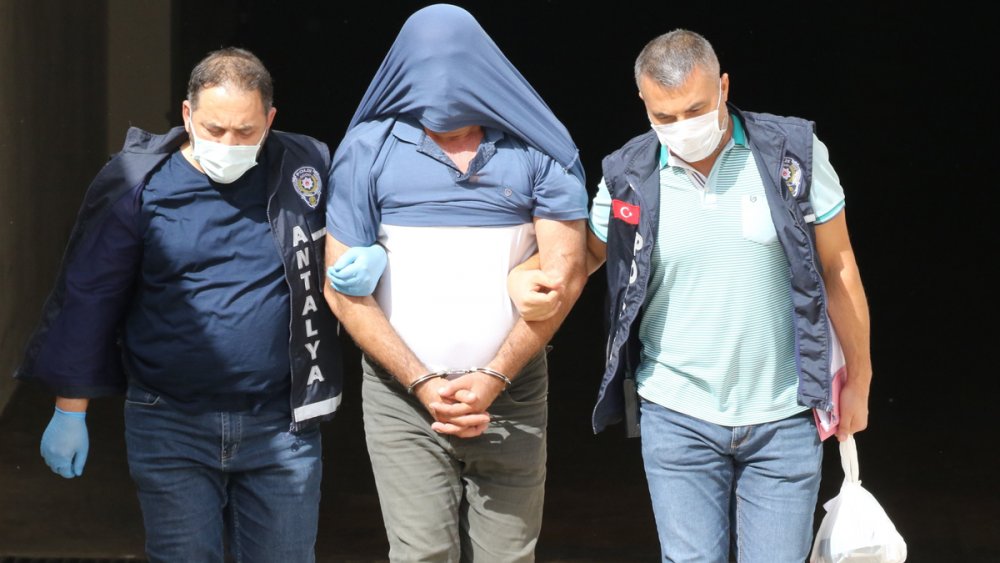 Antalya'nın Döşemealtı ilçesinde yangın alanında cesedi bulunan eski CHP Döşemealtı İlçe Başkanı ve iş insanı Hasan Haluk Yalçın'ı öldürdüğü iddiasıyla gözaltına alınan polis memuru, adliyeye sevk edildi. Şüphelinin polis merkezinden çıkartılırken, tişörtüyle yüzünü ve başını kapattığı görüldü.