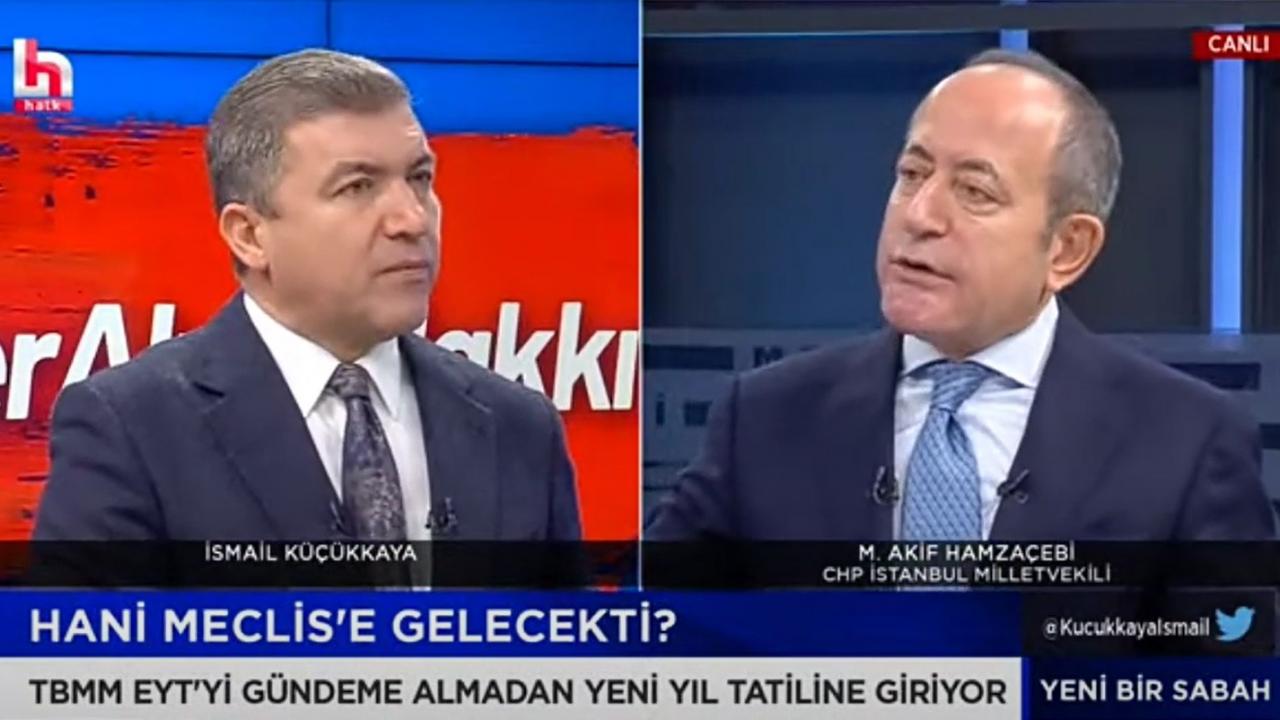CHP İstanbul Milletvekili M. Akif Hamzaçebi İsmail Küçükkaya programında staj mağdurları hakkında konuştu. Küçükkaya, "Çıraklık ve staj mağdurları da var. Biz de zamanında çırak olarak görev yaptık. Sigortamızı devlet verdi. O başlangıç olarak kabul edilsin diyorlar." ifadesini kullandı.
