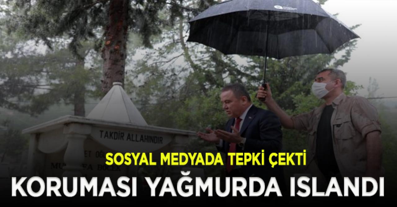 Kendisine şemsiye tutan korumasının yağan yağmurla sırılsıklam olması sosyal kullanıcıları tarafından tepkilere neden oldu.
