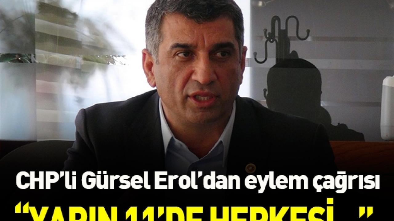 Parti yönetimine tepki gösteren Erol, yarın saat 11:00'de, CHP Genel Merkez'inde oturma eylemi başlatacağını duyurdu. Gürsel Erol yaptığı açıklamada, "Gelecek hedefi olmayan yalnızca iktidara karşı mücadele ve direniş hikâyesi anlatan bir yönetim anlayışını tanımıyorum. CHP’nin söylemi yalnızca mücadele ve direniş üzerine olmamalı; iktidar ve ülkeyi yönetme iddiası ve iradesi üzerine olmalıdır." dedi ve CHP'nin tüm örgütlerini eylemine davet ederek, "Ülke yönetimini hedeflemeyen, genel merkezi yönetmekle yetinenlere meydan okuyorum. Yarın saat 11:00’de Genel Merkez önünde oturma eylemi başlatacağım. Mustafa Kemal Atatürk’ün CHP’sine sahip çıkmalıyız. Eyleme tüm CHP örgütlerini, üyelerini ve gönül verenleri davet ediyorum" ifadelerini kullandı.