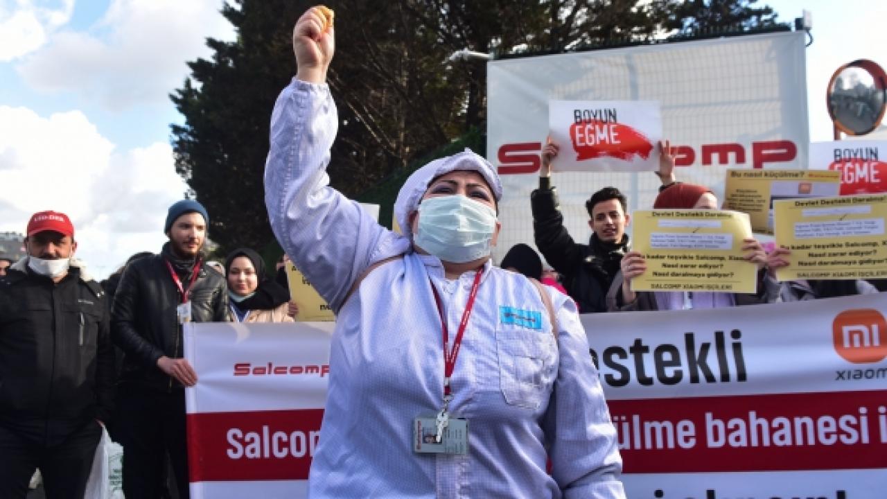 Fabrika önünde yapılan açıklamayı işten atılan Salcomp işçisi Aynur Dönel okudu. Açıklamaya İstanbul İşçi Sendikaları Şubeler Platformu (İİSŞP), Emek Partisi (EMEP), Halkların Demokratik Partisi (HDP), Halkevleri, Türkiye İşçi Partisi (TİP), Türkiye Komünist Partisi (TKP) ve çeşitli demokrasi güçleri de destek verdi. Bir mesajla işten atıldıklarını söyleyen Aynur Dönel, "Bizler bu fabrikaya emek verdik, bu şirkete kazandırdık. Payımıza düşen ise işten atılmak oldu. İşten atmaları ve bizlere yapılan bu haksızlığı kabul etmiyoruz” dedi. Üyesi oldukları Türk Metal Sendikası’nı eleştiren Dönel, "Sendikanın fabrikaya girmesini sağladığımız süreçte ‘Evimiz’ olarak tarif edilen şubeden ‘Randevu aldınız mı?’ gibi trajikomik bir tavırla karşılaştık. İşçiler olarak var ettiğimiz sendikamızın şubesine gidip görüşme talep eden işçiler olarak ne randevusu alacağız? Şube başkanımız Mehmet Ali Akman'a işten atılacaklar listesini hazırlanırken sendikanın listeye müdahale ettiğini öğrendik” diye konuştu.