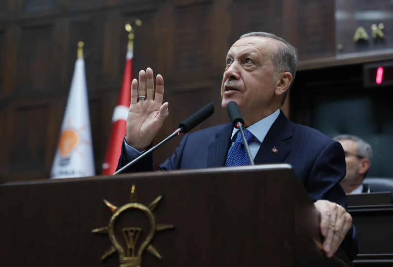 Erdoğan, partisinin TBMM Grup Toplantısı'nda yaptığı konuşmada, TBMM'nin 27. Dönem 6'ncı ve son yasama yılına başladığını anımsatarak, komisyon ve genel kurul faaliyetlerinde milletvekillerine Allah'tan muvaffakiyetler diledi. Milletvekillerinin yaz döneminde seçim bölgelerinde ve görevlendirildikleri diğer yerlerde gerçekleştirdikleri yoğun çalışmaları yakından takip ettiklerini belirten Erdoğan, Türkiye'nin her bir köşesinde kapısı çalınmadık hane, eli sıkılmadık insan, girilmedik gönül bırakmayacak bir anlayışla yürütülen bu çalışmalar için her bir milletvekiline ayrı ayrı teşekkür etti. Erdoğan, "Unutmayınız biz sahayı ne kadar sıkı tutarsak, milletimizi, özellikle yalanları ve çarpıtmalarıyla yanlış yönlendirmek isteyenlerin gayretleri o derece akamete uğrayacaktır." diye konuştu. Cumhurbaşkanı Erdoğan, "2023'e Doğru Şehir Buluşmaları" başlığı altında milletle yeni bir buluşma programı başlattıklarını hatırlatarak, bu kapsamda, partisinin Genel Merkezi, milletvekilleri ve bakanlarla bir yandan Ankara'daki çalışmaları yürüteceklerini, bir yandan da ilçe ilçe tüm şehirlere giderek milletle kucaklaşacaklarını kaydetti.