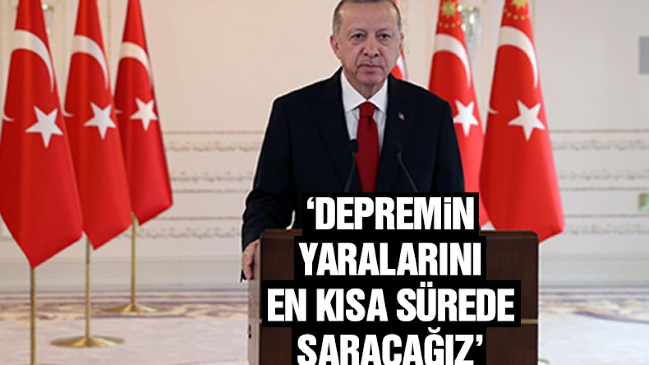 Depremin ilk anlarından itibaren devletin ve milletin tüm imkânlarını afet bölgesi için seferber ettiklerini hatırlatan Cumhurbaşkanı Erdoğan, “Uluslararası yardımı da içeren, 4. seviye alarm durumu ilan ettik. Deprem bölgesinde olağanüstü hâl uygulamasını başlattık. Devletimizin ilgili kurumları yanında sivil toplum örgütlerimiz ve gönüllülerimiz afetzedelerimize yardım etmek için yoğun çaba harcıyor. Bir taraftan arama kurtarma ve enkaz kaldırma çalışmalarını yürütürken diğer taraftan da çadır, konteyner ve prefabrik yapıların kurulumuna hız veriyoruz. İnşallah çok yakında yıkılan şehirlerimizi yeniden inşa ve ihya çalışmalarını başlatıyoruz. Türk Devleti olarak bu felaketin yaralarını milletimizle birlikte el ele vererek en kısa sürede saracağız” şeklinde konuştu.