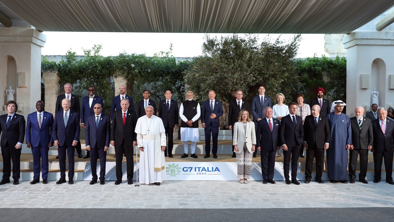 Cumhurbaşkanı Recep Tayyip Erdoğan, zirveye katılmak üzere geldiği Borgo Egnazia'da G7 Zirvesi'ne katılan ülke liderleriyle birlikte aile fotoğrafı çektirdi. Erdoğan'ın fotoğraf çekimi sırasında ve sonrasında Papa Francis ile sohbet ettiği görüldü.