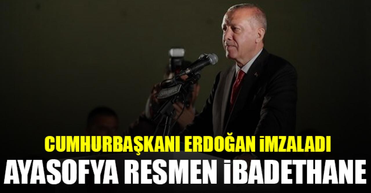 'Hayırlı olsun' mesajını yazan Erdoğan, Ayasofya'nın Diyanet'e devredildiğini ve ibadete açılmasına karar verildiği duyurdu.