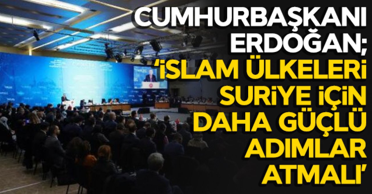 Cumhurbaşkanı Erdoğan, "İslam ümmetinin ayrılmaz bir parçası olan Kıbrıs Türkü kardeşlerimizin maruz bırakıldıkları hak ihlallerini de biliyorsunuz. Türk Devletleri Teşkilatı'na gözlemci üye olan Kuzey Kıbrıs Türk Cumhuriyeti'ne sizlerin de gereken desteği vereceğinize inanıyorum. Filistin meselesinin 1967 sınırlarında başkenti Kudüs olan bağımsız, egemen ve coğrafi bütünlüğe sahip Filistin devletinin vücut bulmasıyla çözüme kavuşturulmasını destekliyoruz. Filistin halkının kendi devletine ve meşru haklarına kavuşması, Kudüs ve Mescid-i Aksa da statükonun korunması için elimizden geleni yapıyoruz ve yapacağız. İslam dünyasını 10 yılı aşkın bir süredir meşgul eden önemli konulardan biri de Suriye'deki ihtilaftır. Salgınla birlikte bu ülkedeki sosyo ekonomik ve insani durum daha trajik bir hal almıştır. Türkiye olarak 3 buçuk milyonu aşkın Suriyeli sığınmacıya topraklarımızda ev sahipliği yaparak, milyonlarcasını da Suriye sınırları içerisinde destekleyerek, kardeşlik vazifemizi layıkıyla yerine getiriyoruz. Suriye'nin çatışma, insani kriz ve terör sarmalından kurtulması için İslam ülkeleri daha güçlü bir irade ortaya koymalı. Siyasi çözüm çabalarına etkin destek vermelidir. Biz de bu konuda gereken adımları atmakta tereddüt etmeyeceğiz" ifadelerini kullandı.