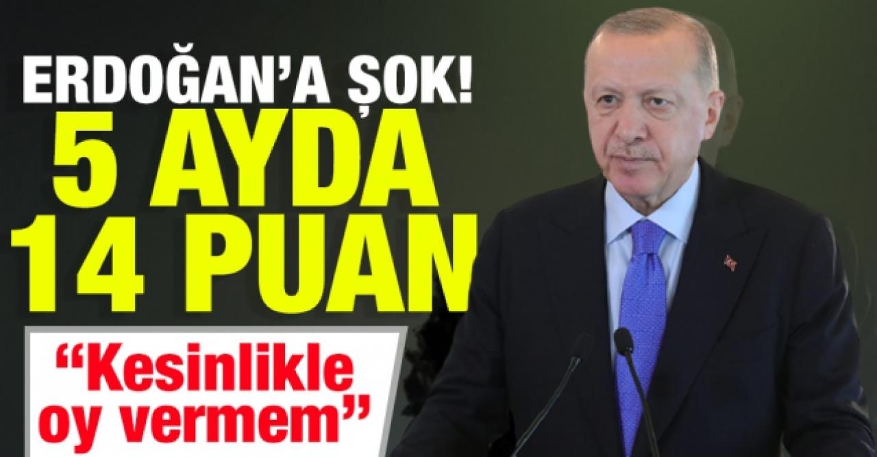 Seçmenlerin yüzde 56’sı “Erdoğan’a asla oy vermem” derken, yüzde 32,5’i “kesinlikle oy veririm” dedi. Şubat ayında yüzde 43 olan “asla oy vermem” diyenlerin oranı beş ayda 14 puan artarak Ağustos’ta yüzde 57’yi bulmuştu. Son 1 ayda Erdoğan’a asla oy vermem diyenlerin oranında yaklaşık 1 puanlık bir düşüş yaşandı. Erdoğan’a “asla oy vermem” diyenlerle “kesinlikle oy veririm” diyenler arasındaki fark Şubat’ta 5 puanken, Eylül’de 23,5 puan olarak ölçüldü.Bu konuda kararsız olanların oranı ise yüzde 10,9 seviyesindedir.