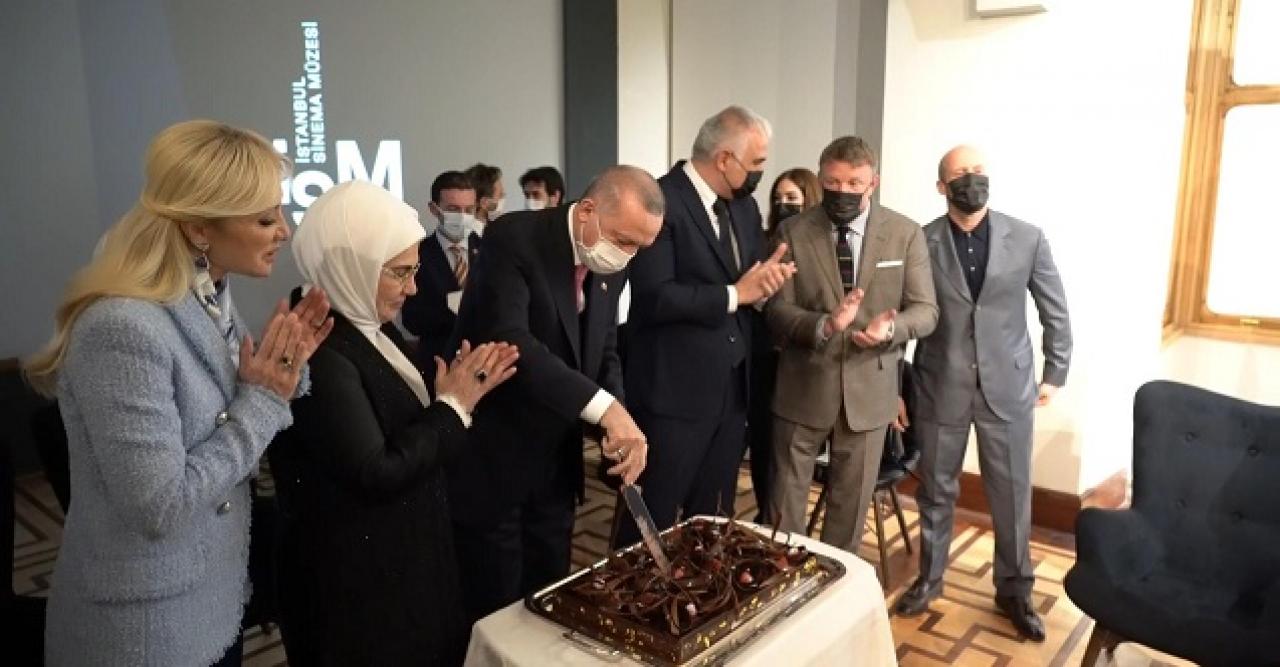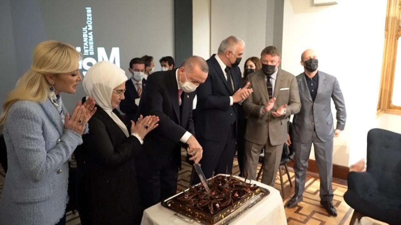 Cumhurbaşkanı Erdoğan eşi Emine Erdoğan ile birlikte davetlilerin alkışları arasında doğum günü pastasını kesti. Erdoğan 67 yaşına girdi.