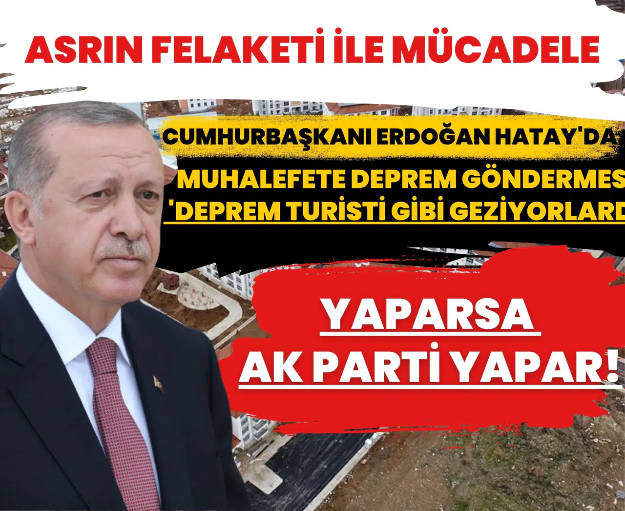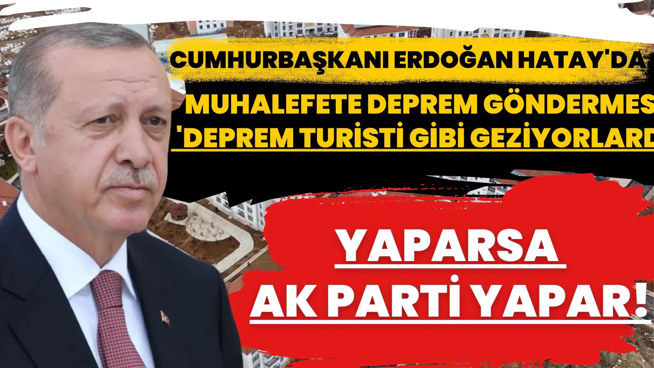 Cumhurbaşkanı Erdoğan, “Gönlümüzde bir başka yeri olan Hatay’da sizlerle bir araya gelmenin bahtiyarlığını yaşıyorum. Kahramanmaraş, Adıyaman, Malatya ve Ankara’da, deprem bölgemizin tamamında bizleri takip eden tüm vatandaşlarıma buradan muhabbetlerimi gönderiyorum.” ifadelerini kullandı.