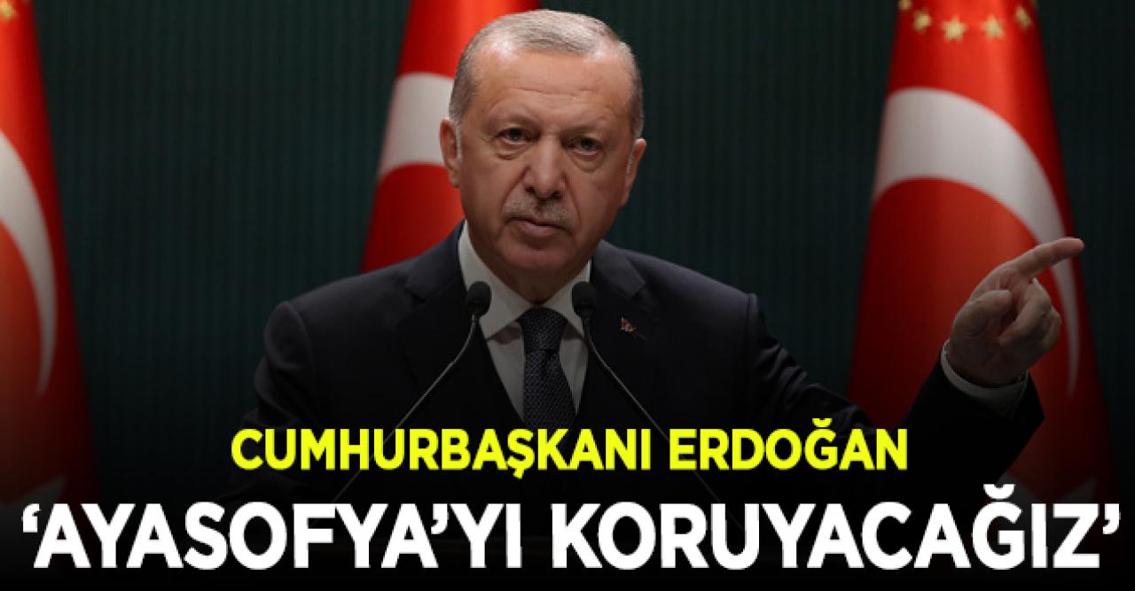 Hiçbir ayrım yapmadan herkesi Türkiye'nin hak, hukuk adalet ve meşruiyet temelinde uzattığı barış ve iş birliği eline karşılık vermeye davet ediyorum. Bedeli mazlumların, mağdurların ahı ve feryadı olan hiçbir düzenin sahiplerine hayır getirme ihtimali yoktur. Yaşadığımız dünyayı sadece belirli bir kesim için değil herkes için daha huzurlu bir yer getirene kadar mücadelemizi devam ettireceğiz. Ayasofya'nın müzeden camiye döndürülerek hizmet vermeye başlayacak olması hepimizi sevindirmiştir. Harap halde teslim alınan Ayasofya, tam anlamıyla bize ait bir esir haline dönüştürülmüştür. Tam 5 asırdır süren bu sahiplenişi yok sayarak burayı Fetih'ten önceki haliyle tasavvur etmekte ısrarın gerisinde gaflet yoksa başka şeyler aramak gerekir. Bu medeniyetin tarihine, kültürüne değerlerine doğrudan saldırmaya cesareti olmayanlar sembollerimizi yıpratarak sinsice kendilerine yol bulmaya çalışıyorlar. Hamd olsun bu zaman kadar aradıkları yolların hepsi de milletimizin irfanına çarpıp yerle yeksan oldu. Hiç kimse merak etmesin Ayasofya'yı yeniden vakfiyesine uygun hale getirken kültürel miras vasfını da ecdadın yaptığı gibi koruyacağız. tüm vatandaşlarımızın ibadethane ihtiyaçlarını karşılama konusunda dünyadaki tüm ülkelerden daha ileri seviyededir.