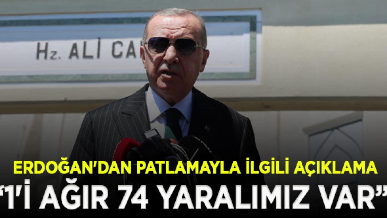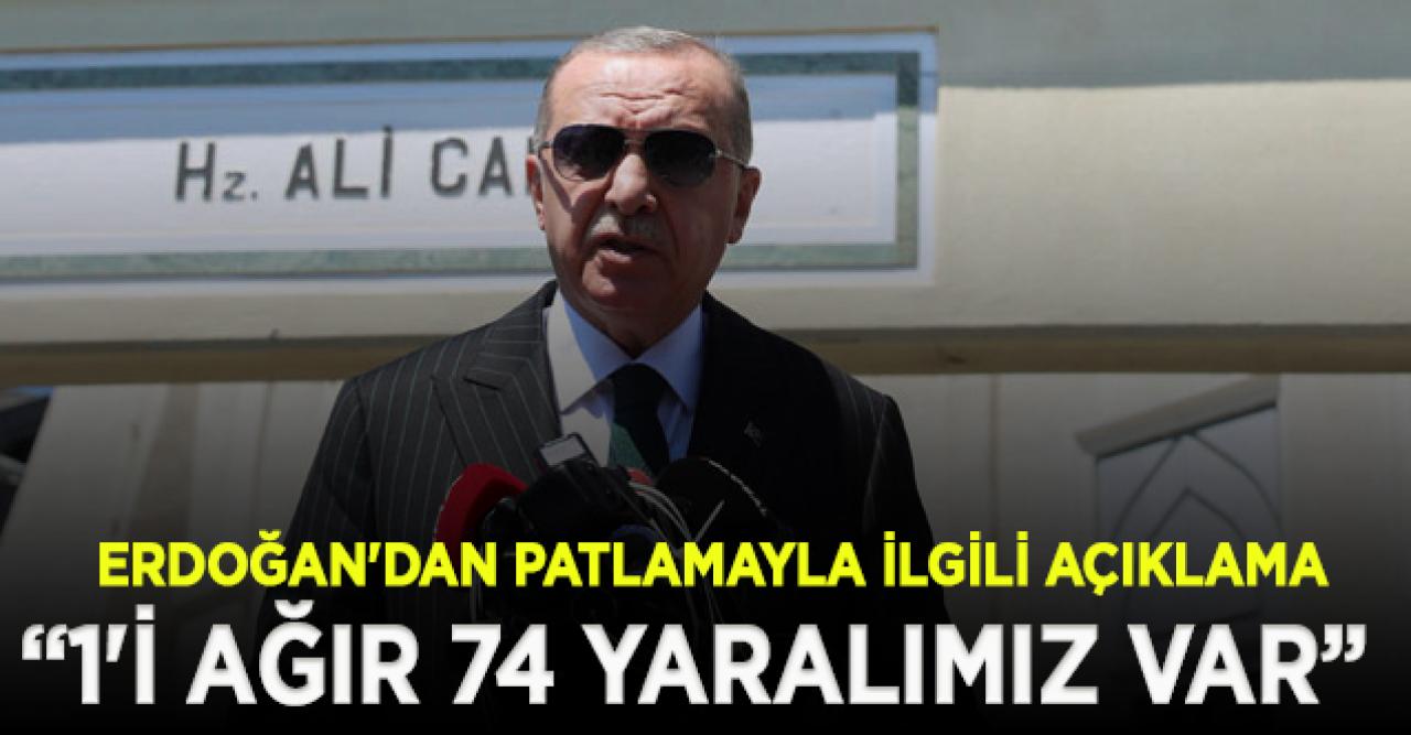 Erdoğan ilk olarak Sakarya'da yaşanan patlamadaki son durumun sorulması üzerine, "Bildiğiniz gibi Sakarya Hendek'te bir havai fişek fabrikasında patlama yaşandı. Burada çalışan personel sayısı 189. Bölge koruma ve kontrol altına alındı. Her türlü çalışma yapılmakta. Patlamada şu ana kadar 2 vefat biri ağır 74 yaralımız var. Temennimiz tabi içeride olan yaralılarla ilgili de olumsuz almamaktır. Konuyla ilgili şu an 3 bakanım orada. Valimizi il ve ilçe belediye başkanlarımız orada. İş yeri sahibi ile de görüşmeler yaptık. Kendileri de tabi şu an itibarıyla olay yerinde çalışmaları sürdürüyorlar. Ben ölen kardeşlerimize Allah'tan rahmet yaralılara da şifalar temenni ediyorum. İnşallah bir an önce yangın tamamen kontrol altına alınıp söndürülmüş olsun. Daha büyümeden bu işi bitirelim. 160 dönümlük bir arazi üzerinde bu fabrika" dedi.