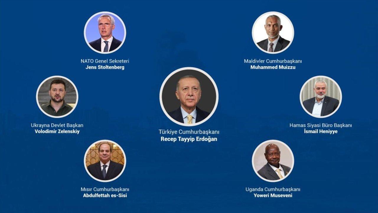 Cumhurbaşkanı Erdoğan, İsrail'in Gazze'ye yönelik saldırılarının sona ermesi, çatışmanın barışçıl yöntemlerle çözüme ulaşması, insani yardımların Gazze’ye ulaşması ve sükunetin sağlanması için atılabilecek adımları ele aldığı telefon görüşmeleriyle diplomasi trafiği yürütüyor.