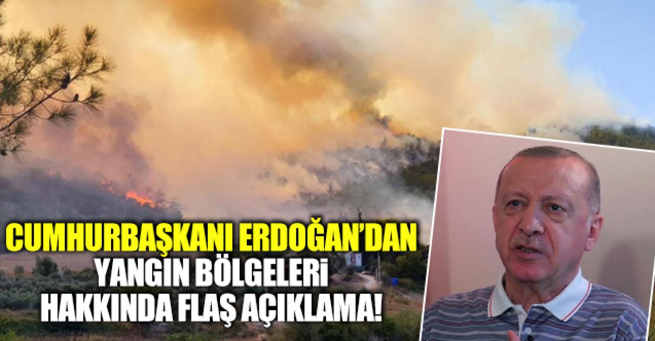 Cumhurbaşkanı Erdoğan, "Orman yangınlarından etkilenen bölgelerimizi “Genel Hayata Etkili Afet Bölgesi” ilan ettik" açıklamasında bulundu