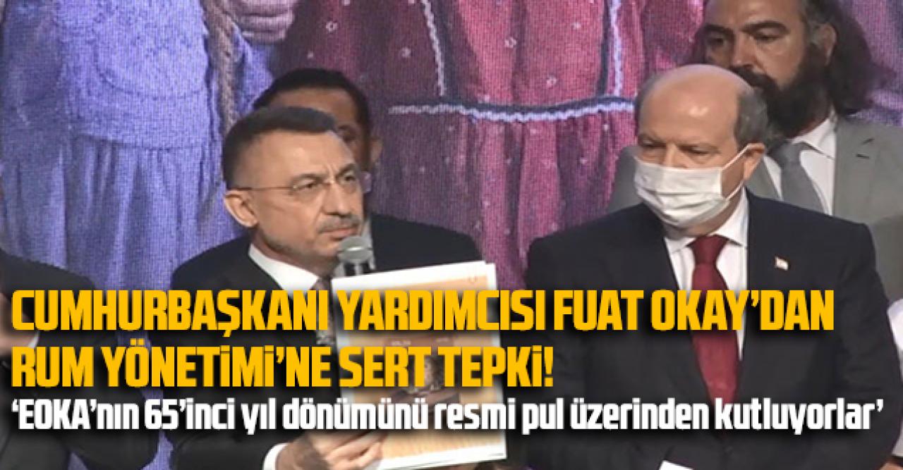 Cumhurbaşkanı Yardımcısı Fuat Oktay, Kuzey Kıbrıs Türk Cumhuriyeti’nin (KKTC) Gazimağusa kentinde çekimleri süren TRT’nin yeni dizisi "Bir Zamanlar Kıbrıs'ın" galasına katıldı. Burada, Rum Yönetimi’nin Kıbrıslı Türkleri acımasızca katleden terör örgütü “EOKA Mücadelesi’ nin 65’inci yıl dönümüne bastırdığı pullara tepki gösteren Oktay, Rum Kesimi’nden zarf içerisinde KKTC’deki Beyarmudu (Pile) Belediye Başkanı İlker Edip’e gönderilen terör örgütü “EOKA Mücadelesi’ nin 65’inci yıl dönümüne ilişkin pul gönderildiğini ve pullar internet ortamında 6 TL'den satışa çıkarıldığını belirtti.