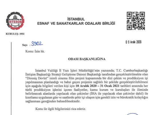 Gazeteci Sinan Tartanoğlu'nun ulaştığı yazıya göre İstanbul Valiliği, İstanbul'daki kurum ve kuruluşlara çekim faaliyetlerinde kolaylık sağlanması talimatı verdi.