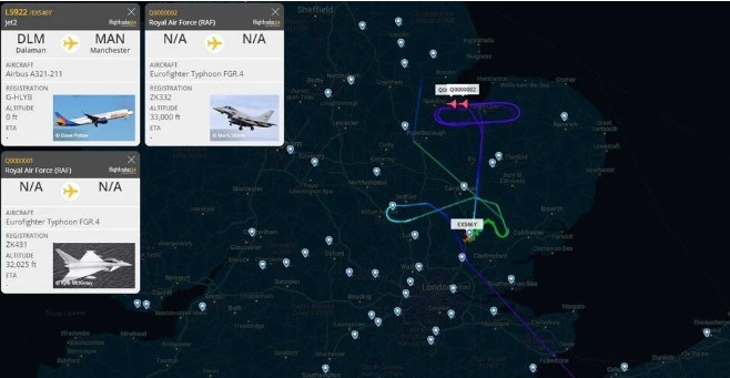 İngiliz basınında yer alan haberlere göre, bomba ihbarı nedeniyle Stansted Havalimanı'na yönlendirilen yolcu uçağına, 2 İngiliz Typhoon savaş uçağı eşlik etti.