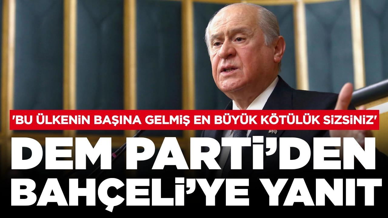 DEM Parti sosyal medya hesabından Bahçeli'nin söz konusu açıklamalarına yanıt verdi. Yapılan açıklamada "Telaffuzunu bile kendimize yakıştırmadığımız o hakaretleri misliyle kendisine iade ediyoruz" ifadelerine yer verildi.