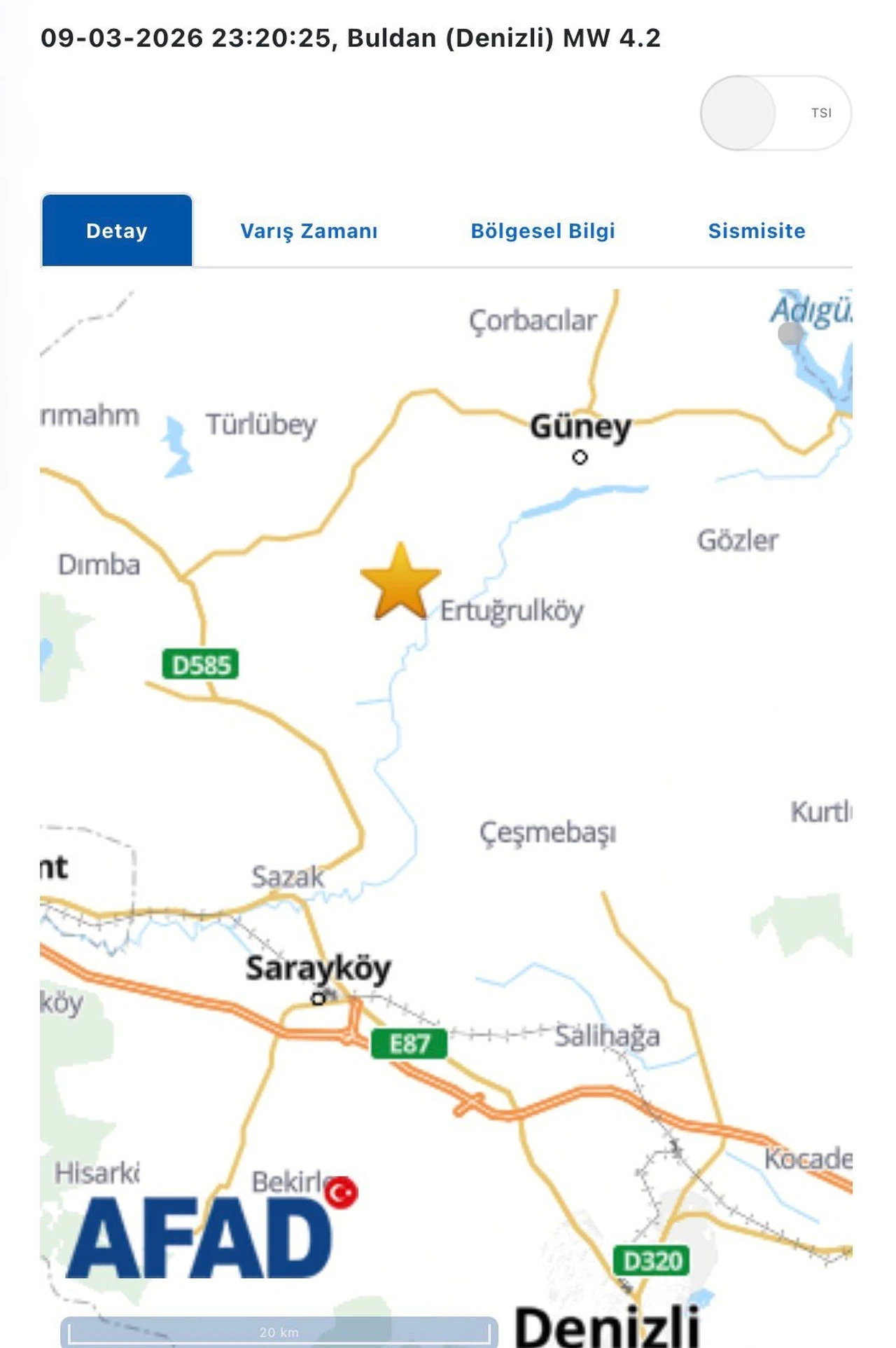 Saat 23.20’de meydana gelen deprem, yerin yaklaşık 12,16 kilometre derinliğinde gerçekleşti. Gün boyunca bölgede 100’ün üzerinde artçı deprem yaşandığı bölgede, son sarsıntı Denizli kent merkezinde de hissedildi. Kısa süreli paniğe neden oldu.